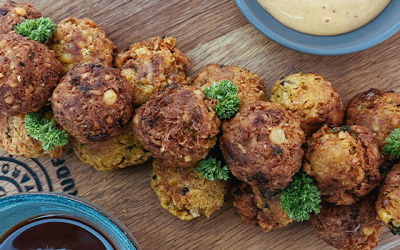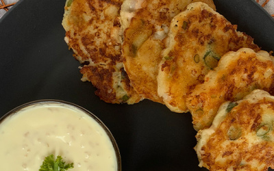 Tasty and best topped with crème fraiche and smoked salmon, but also yummy dunked in tzatziki.